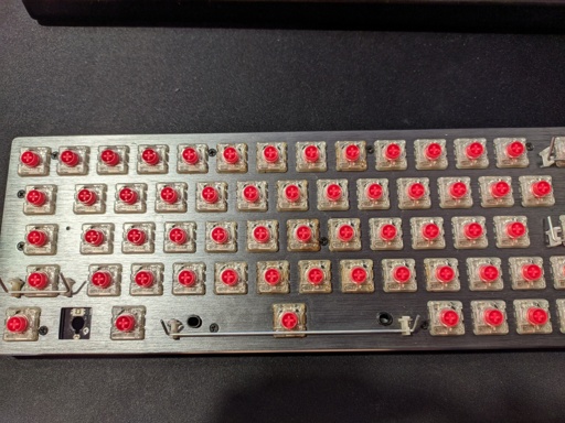 assembled, feels great. I think the action is a bit better than before. maybe look into lubing the space bar a bit, feels kinda off when I hit it off center.
