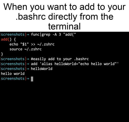umm why would you ever do that, i only add to my .rc when i come up with an alias i know i’m gonna use a bunch