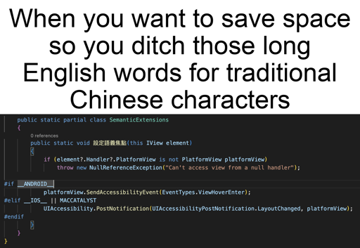 I have unironically thought that code might be easier to read/write/understand in chinese.