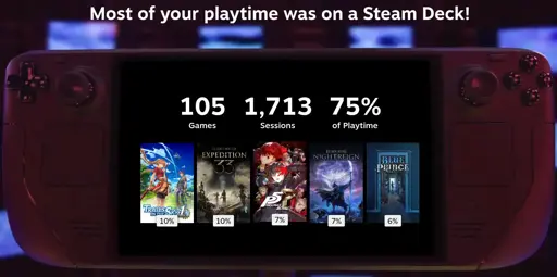 Fubarberry@sopuli.xyzM to Steam Hardware@sopuli.xyzEnglish · 25 days agoSteam Replay is out, share your deck statssopuli.xyzimagemessage-square55fedilinkarrow-up1169arrow-down13file-text