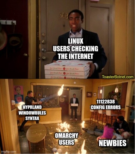 These folks have a skill issue tho, haven’t touched my hyprland config in ages. Just don’t overcomplicate/bloat your config, it’s not that hard.