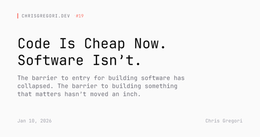 arrow-up1192arrow-down1external-linkCode Is Cheap Now. Software Isn’tchrisgregori.devcodeinabox@programming.dev to Programming@programming.devEnglish · 27 days agomessage-square39fedilinkfile-text