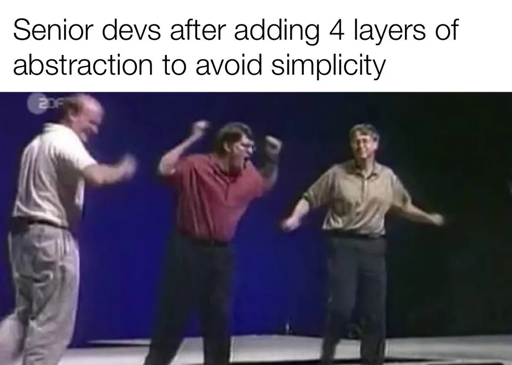 Holy hell, I feel this viscerally. I recently inherited an enterprise codebase with a new job and that pic is exactly how I imagine the consulting company reacted after hand-off. The code is actually quite clean and mostly makes sense, but it’s completely undocumented (including a lack of specs and XML comments for endpoints). By and large, it’s mostly SOLID, but there are abstractions on abstractions, handlers for handlers for handlers. Configuring to run locally or against the dev environment is a huge rigamarole that I’m trying to simplify before trying to bring on any more SWEs. The bright spot here is that I’ve been given a long runway to come up to speed.