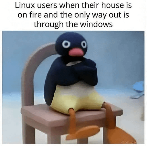 And now I have a picture of a sweaty “I use Arch” user yelling this at a fire about to consume them.