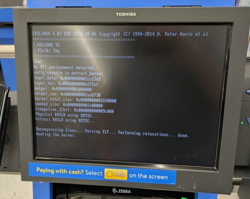 arrow-up1244arrow-down1imagethe self checkout machines at Walmart need a reboot. syslinux 6.03lemmy.caskiguy0123@lemmy.ca to Linux@lemmy.ml · 5 days agomessage-square29fedilink
